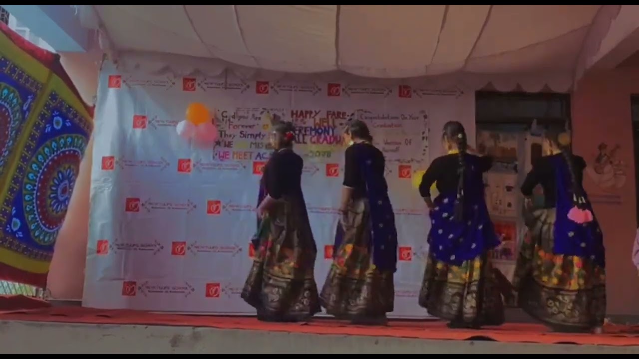 Students from class 10 performing group dance at farewell program organized by New Tulips School 2079.